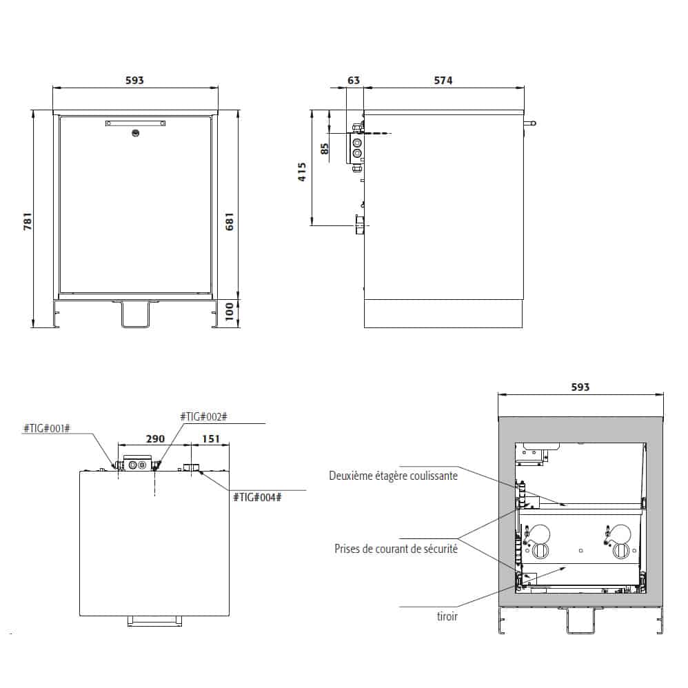 - Dimensions externes : L.593 x P.574 x H.780 mm.