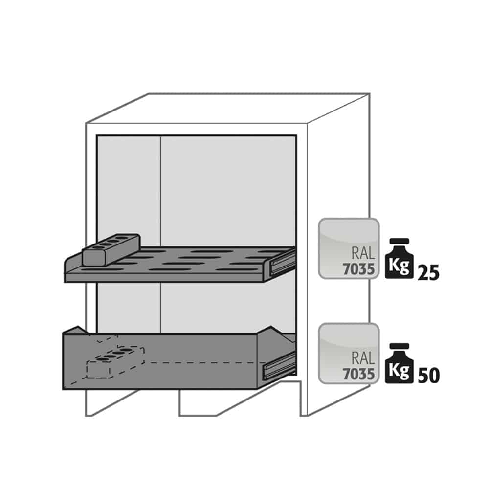 En cas d’incendie, grâce au socle de transport intégré, les services compétents tels que les pompiers peuvent immédiatement évacuer l’armoire et la transporter vers un endroit sûr à l’extérieur