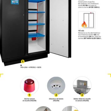 - Conduits de ventilation avec système thermofusible permettant d’isoler le contenu de l’armoire en cas d’incendie