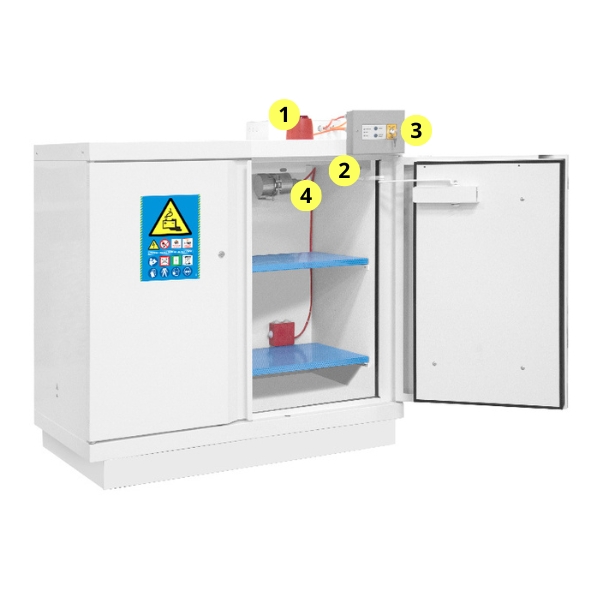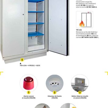 - Conduits de ventilation avec système thermofusible permettant d’isoler le contenu de l’armoire en cas d’incendie