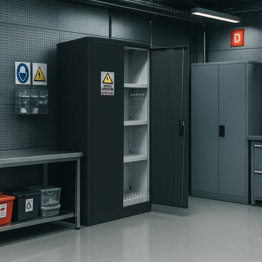 Attention : En cas d’incendie de batterie lithium dans une armoire, ne l’ouvrez pas et ne la déplacez sous aucun prétexte. L’intervention des pompiers est indispensable pour votre sécurité. Restez à distance et attendez leur arrivée