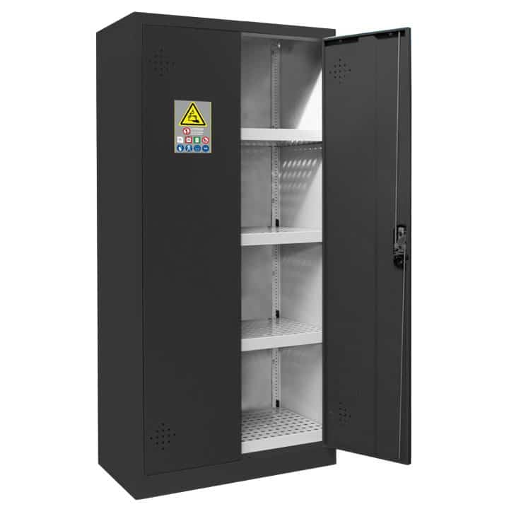 Cette armoire vendue sans équipements est conçue pour les spécialistes travaillant avec des batteries au lithium. Développé pour le rangement sûr de ces batteries, elle fournit une réponse sur mesure pour les agriculteurs, industriels, viticulteurs, architectes paysagistes, horticulteurs, collectivités et autres entreprises exploitant des batteries au lithium dans le cadre de leur travail.