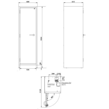 - Dimensions externes : L.599 x P.615 x H.1953 mm.