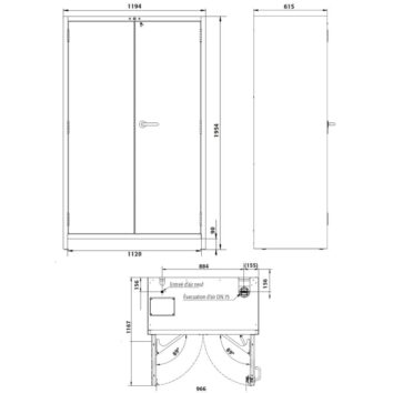 - Dimensions externes : L.1193 x P.615 x H.1953 mm.