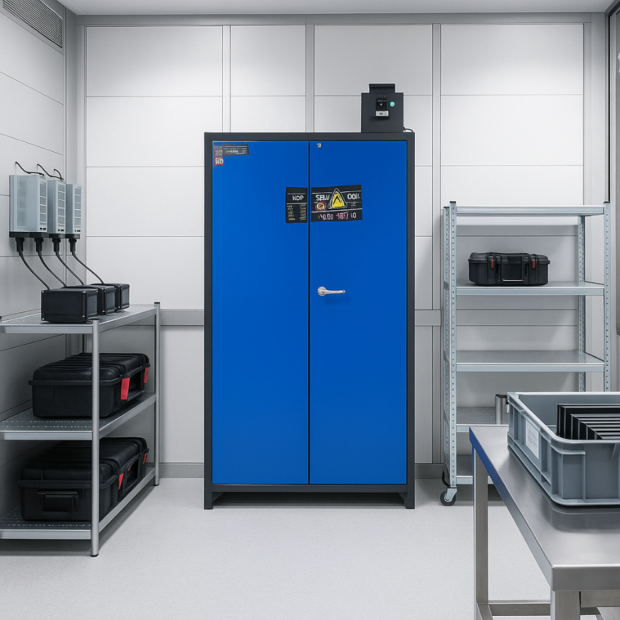 L’armoire ION-PRO-90 est spécialement conçue pour offrir une sécurité avancée aux professionnels stockant ou rechargeant des batteries lithium-ion. Grâce à ses certifications rigoureuses et ses équipements technologiques, elle assure une protection optimale tout en répondant aux normes les plus strictes en matière de sécurité incendie. Idéale pour les environnements professionnels exigeants, cette armoire offre des fonctionnalités innovantes et des garanties étendues.