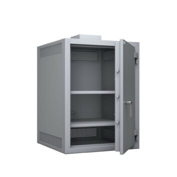 - Serrure de coffre-fort classe 2 VDS, 1 000 000 de combinaisons alphanumériques, intâtable, temporisée après la 3ème erreur. Condamnation automatique à la fermeture. Alimentation par pile avec système extérieur de secours. CD-ROM 140 x 125 x 5 : 198 pièces, Cassettes 112 x 112 x 32 : 87 pièces, Disquettes 88 x 88 x 3 : 1188 pièces, Cartouches LTO 105 x 102 x 22 : 126 pièces, Bandes magnétiques 162 x 107 x 25 : 78 pièces.