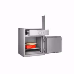 - Serrure électronique classe 2 VDS, 1 000 000 de combinaisons alphanumériques, intâtable, temporisation après la 3e erreur. Un code maître et un code utilisateur programmables. Alimentation par pile avec système extérieur de secours.