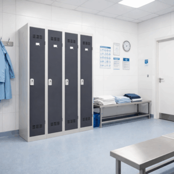 Notre gamme de vestiaires métalliques pour industries propres propose des casiers de toutes tailles, de 1 porte à 4 portes. Des casiers pour la sécurité des professionnels avec différents systèmes de fermeture (serrure à clé, serrure à moraillon, serrure à roue codeuse, serrure à code électronique) et accessoires (couvercle, kit 4 pieds [acier ou inox], socle de banc).