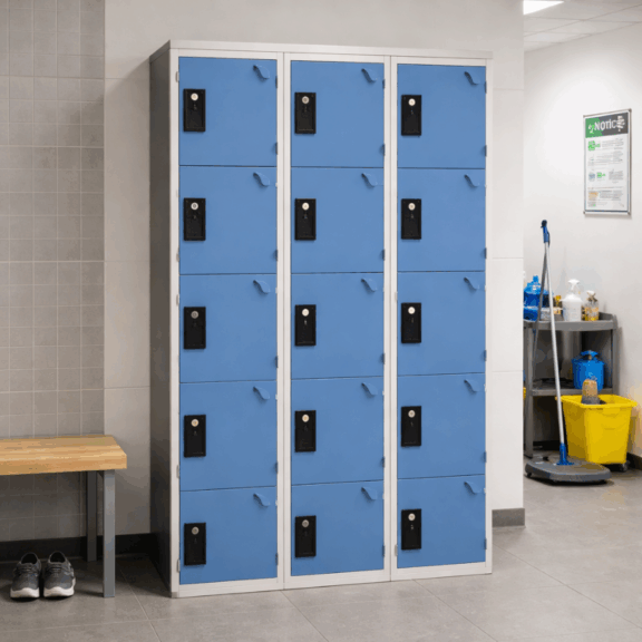 Optez pour le vestiaire multicases Gamme ACCESS, offrant 5 cases superposées par colonne afin de maximiser l’espace de rangement. Disponible en deux largeurs (L.30 ou L.40 cm) et en configurations de 1 à 3 colonnes (P.50 x H.180 cm), il s’adapte à une grande variété de secteurs : entreprises, collectivités, salles de sport, ateliers, etc.