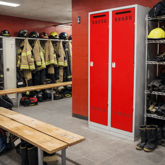 Le vestiaire métallique pompier a pour fonction de garantir un rangement efficace pour l’équipement des centres de secours et autres casernes. Chaque casier de vestiaire pompier proposé dans notre catalogue dispose en effet de tous les éléments essentiels à une utilisation pratique au quotidien : boîte à lettres pour le courrier, patères, miroir adhésif, et bac de rangement. Les portes étant munies de cadenas, vous pouvez ainsi laisser vos affaires en toute sécurité lorsque vous êtes en service. Découvrez notre vestiaire pompier :