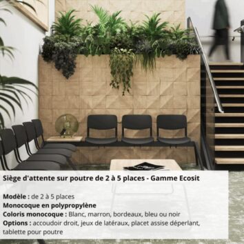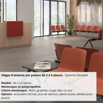 Il peut se décliner en de nombreux styles et options de couleur pour s’adapter à n’importe quel décor et apporter un peu de gaité. Les sièges visiteurs apportent de la modernité, du design et de la couleur.