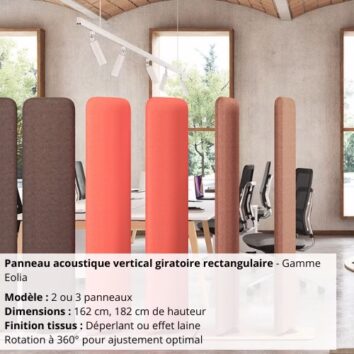 Panneau acoustique vertical giratoire – Tissus déperlant/effet laine – H.162/182 cm – Gamme Eolia