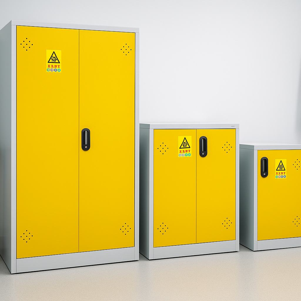 | Construction | Acier monobloc 8/10ème ou 10/10ème selon modèles Peinture époxy (corps RAL 7035 Gris clair / portes RAL 1023 Jaune signalisation) | |||