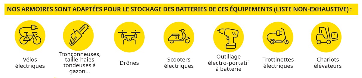 - Ne permet pas de recharger les batteries, l’armoire sert uniquement à entreposer les batteries.