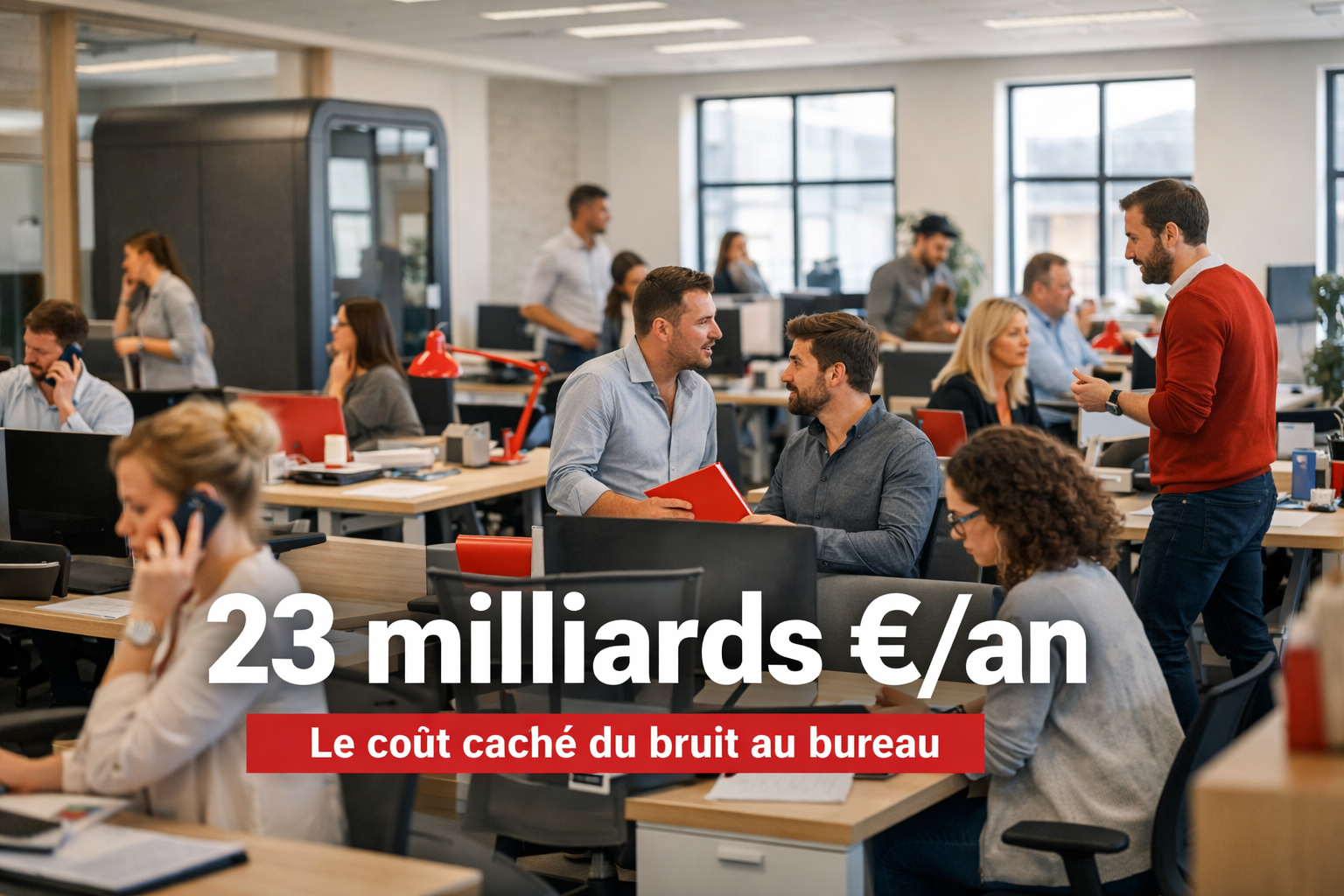 Chaque jour, vos salariés perdent 86 minutes de productivité à cause du bruit ambiant. Sonneries de téléphone, conversations entre collègues, clavier qui claque : l’open space coûte 23 milliards d’euros par an aux entreprises françaises. Votre PME n’y échappe pas. Calculer le coût réel du bruit dans vos bureaux permet de justifier des investissements acoustiques qui se remboursent en moins d’un an.